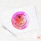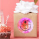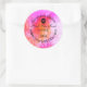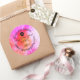 A red and orange fire design on a swirling pink background, with text for a product like a candle.