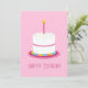 Pink 1 year old girl happy birthday smash cake card. Beautiful colorful baby blue birthday cake first birthday card. Rainbow sprinkles vanilla strawberry cake with a single lit candle. Blank inside for personal message.