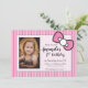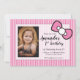 A cute pink bow with pink and white striped background. This customisable invitation gives you to freedom to personalised the details and use your baby girl's photo.