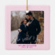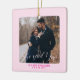 Pink First Christmas Engaged Couple Custom Photo Ceramic Ornament