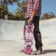 Funny skull surrounded by pink flames is a colourful skull that looks great on skateboards.