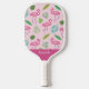 Pink flamingo and tropical leaves personalised pickleball paddle