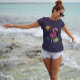 Go from the beach to the boardwalk in this cute Flamingo Cover Up Dress. Customise the text to personalise if desired.