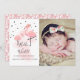 Cute hand drawn pink flamingos. Black conffetti dots | Blush Pink Brush Strokes. It reads "Hello World!" but you can personalise all text information. Customise it with your baby girl's photo. Illustrations & Design by MuseBloomDesigns | Photography by Gabriela Koopmans @ https://www.gabriela-photography.com/
