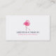Cute pink flamingo watercolors illustrations on white background with blue and pink customisable typography, wedding planner, and event designer custom business card template.