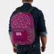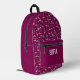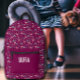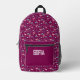 This backpack features a pink flamingo design and name. It has a cute red pattern that enhances the visual appeal. The design is printed directly on the backpack material, with the pink flamingo as the main element. The red pattern complements the flamingo, contributing to the overall look of this printed backpack.