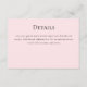 A wedding details enclosure card in pink with black text and a flamingo bride and groom on the back. Place your information on this card, add it to your cart, then send it to your guests.
