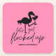 Pink Flamingo Flocked Up Tropical Birthday Square Paper Coaster
