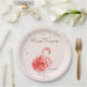 Pink Flamingo Flower,Gold Confetti Paper Plate