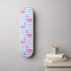 Pink Flamingo Fun Pattern - flamingo birds on a blue and white striped background - skateboards from Ricaso