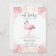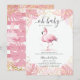 Pink Flamingo Gold Tiara Tropical Girl Baby Shower Invitation