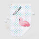 Fun blue and white polka dot pattern golf towel with graphics of a pink fuzzy looking flamingo. Custom black text is ready to personalise to suit your needs. Lovely gift idea for the lady golfer.