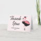 A folded graduation thank you card with a pink flamingo in a black graduation cap and gown on a pink background. Simply add your name & message, add these cards to your cart, and thank all the people that have helped you along the way.