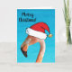Pink Flamingo in red cartoon Santa hat Christmas Holiday Card