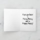 Photograph of a pink flamingo against a tropical blue background on a holiday card. Front: Merry Christmas! Inside: Hope you have a Merry Merry and a Happy Happy!