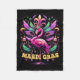 Pink Flamingo Mardi Gras Crown And Beads Mask Carn Fleece Blanket