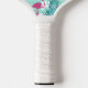 Pink flamingo mint green stripes palm leaves pickleball paddle