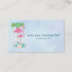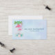 Business cards with an illustration of a momma and baby pink flamingo standing on a bed of floral succulent flowers with green palm trees swaying in the back.