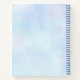 A spiral notebook with an illustration of a momma and baby pink flamingo standing on a bed of floral succulent flowers with green palm trees swaying in the back. Tropical and pretty. The background is a summery light blue watercolor with hints of purple. Personalise with a monogram initial and name.