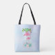 Pink Flamingo Momma & Baby with Palm Trees Tote Bag