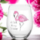 Pink Flamingo Oh Flock It's My Birthday Preppy Stemless Wine Glass