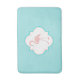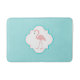 A teal and pink lined ornate banner has a pink flamingo at the centre on this pretty bath mat. The banner is placed on an aqua blue background. This mat matches the Hibiscus Pattern Pink Flamingo shower curtain and other products in our store.