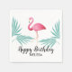 Pink Flamingo Palm Leaves Greenery Birthday Napkin