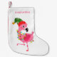 Pink flamingo personalised small Christmas stocking. Easy to change the text. Cute watercolor design.