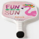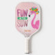 Cute fun in the sun pink flamingo pickleball paddle with silver sparkle accents. Customisable with your own text. Great gift for the pickle ball lover in your life!