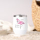 Add a splash of fun to your party with this chic flamingo wine tumbler! Featuring a fabulous flamingo wearing a pink crown and the playful phrase “Flocking Fabulous”, this tumbler is perfect for tropical parties, bachelorette weekends, birthdays, or summer girls’ nights. A stylish and sassy tumbler for any festive celebration! Personalise with a name.