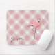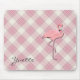 Fun and pretty this plaid mouse pad is done in a retro style pink and cream plaid. Graphics of a pink flamingo, on the right side, and black script text on the left side. Personalise the text to say anything you want. Great for home, school, or office and makes a great gift.