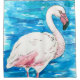 Watercolor and ink painting of a flamingo in the water