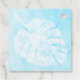 Apink flamingo on a sky blue background fills the front of this favor tag that is perfect for a summertime party On the back, a light blue watercolor background and white palm leaf allow you to leave the back blank or write a recipient name or short wish.