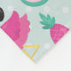 A blanket with a pattern - a cute illustration of a pink flamingo with some watermelons and pineapples. Pink and green colour scheme. Summery and tropical.