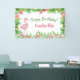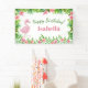 The cute pink flamingo girl's birthday party banner features a watercolor graphic border of tropical leaves and pink flowers and is accented with an adorable pink flamingo. Personalise this fun banner with the birthday girl's name.