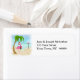 A fun tropical holiday theme. Design features pink flamingo with Santa hat and wreath, palm tree and North Pole sign on beach background.Graphics©http://www.delightful-doodles.com/