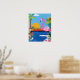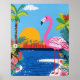 Bring the vibrant energy of the tropics into your home with this eye-catching flamingo art poster. The bold design features a pink flamingo standing in a lush, tropical setting, complete with palm trees, colourful flowers, and a setting sun. This poster offers a splash of colour and fun. Perfect for adding a touch of paradise to any room.