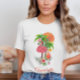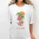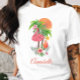 This t-shirt boasts a high-quality, AI-generated print of pink flamingos in a tropical setting, perfect to be worn on summer vacations or weekend outings.