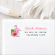Watercolor painting tropical foliage address labels featuring a cute pink baby flamingo.