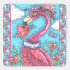 PINK FLAMINGO VALENTINE HEARTS, LOVE BIRD WHIMSY SQUARE STICKER