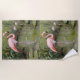 Pink Flamingo Water Lilies And Reeds Oil Painting, Beach Towel
