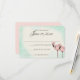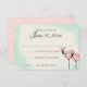 Two hand drawn watercolor pink flamingos decorate this elegant pink wedding response card to compliment invitation with crisp decorative text and warm ivory and mint background.