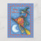 PINK FLAMINGO WITCH, FLYING OVER MOON ON A BROOM HOLIDAY POSTCARD