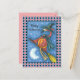 PINK FLAMINGO WITCH, FLYING OVER MOON ON A BROOM HOLIDAY POSTCARD