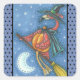 OVER THE MOON, ON A BROOM, COMES PINK FLAMINGO MAGIC. HAPPY HALLOWEEN STICKERS Square *Customise Blue, Black Polka Dots ...Look For Matching Items Susan Brack Design