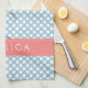 Pink Flamingo With Blue And White Polkadot Tea Towel
