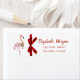 Adorable pink flamingo with santa hat and red bow on white background. An elegant and sophisticated designe.Costumize with your name and address details.
