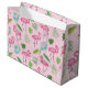 Pink Flamingo with Tropical Leaves Pattern Large Gift Bag