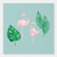 Pink Flamingos and Palm Leaves on Teal Wallpaper