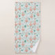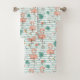 A Beautiful Tropical Bath Towel Set Of Pastel Pink Flamingos and Seagulls With Green And White Stripes